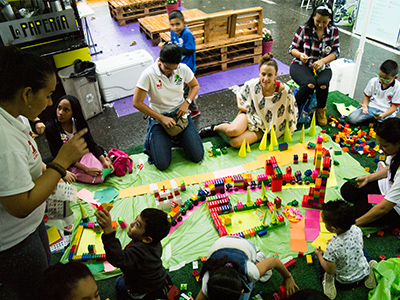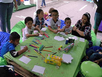 Realizamos actividades diseñadas para que los niños logren expresar todas esas ideas que tienen y de este modo tener nuevas soluciones para la creación de nuevas ciudades. Entre algunas de estas encontramos: Postales de imaginarios urbanos #PostalesDesdeMiBarrio, ejercicios de diseño participativo con bloques didácticos (LEGO – ARMOTODO) #YoDiseñoMiCiudad, Mapeo Colectivo.